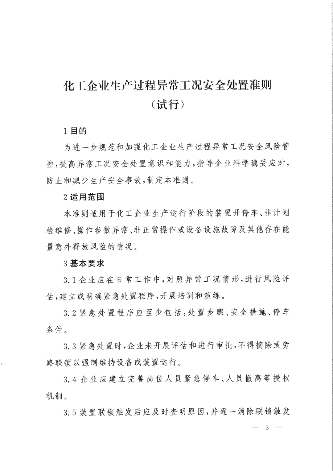 《化工企业生产过程异常工况安全处置准则(试行)》(应急厅〔2024〕17号)
